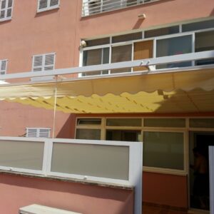 – Toldo Brazos Extensibles: tiene 2 brazos extensibles que quedan ocultos bajo la lona y no necesita estructura metálica como soporte.
