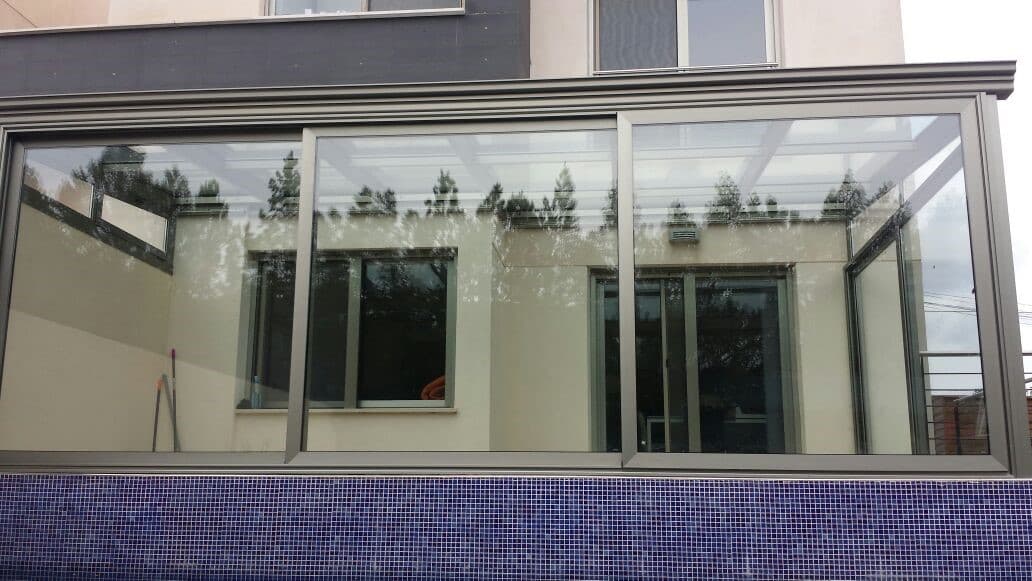 Ventana corredera de aluminio de 3 hojas 3 raíles en color inox mate con cristal de seguridad y tratamiento de bajo emisivo y control solar (Guardian Sun).